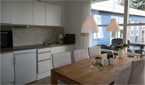 Indeholder: dyner og puder til 6. pers. (linned medbringes), køkken med køleskab, komfur med ovn, service til 6. pers. Stor terrasse med have møbler og grill.